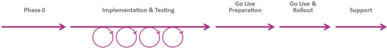 Con la fecha de lanzamiento en mente, se realizan preparativos intensivos para el Día X mientras la fase de implementación aún continúa. Cubrimos todos los pasos desde la provisión del sistema hasta el aseguramiento de la calidad final a través de las pruebas del sistema.